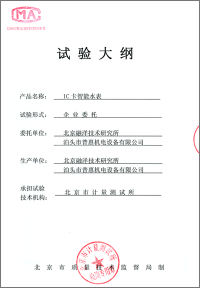 | 北京檢測(cè)報(bào)告/實(shí)驗(yàn)大綱“IC卡智能水表”