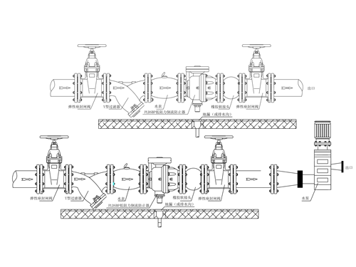3.維護(hù)閘閥應(yīng)安裝在本閥的兩端,過濾器應(yīng)安裝在入口之前,柔性接頭應(yīng)至少安裝在一端。